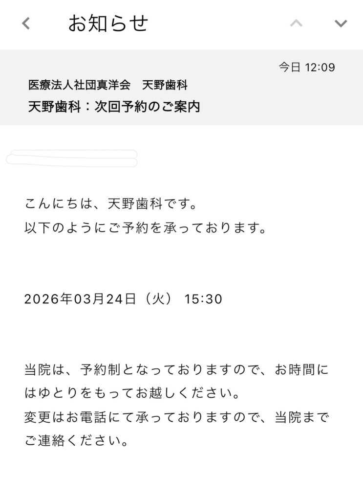 他にも、予約の前日に「〇時に予約が入ってます」というメッセージが届くのですが、そのおかげで忘れてたけど思い出せたとご来院いただいた患者さんもいらっしゃいました😊