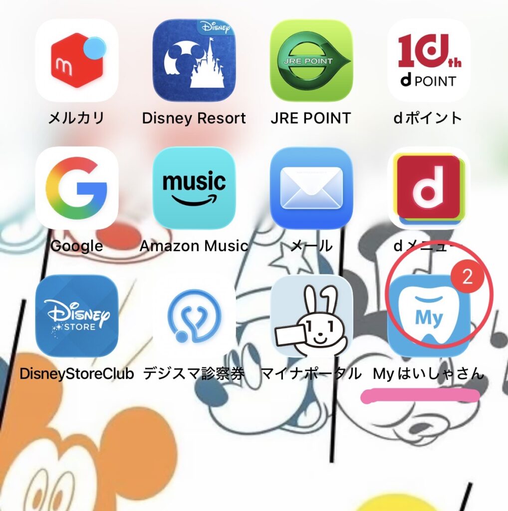 メッセージが届くとホーム画面のMyはいしゃさんのアプリの横に数字が表示されます。