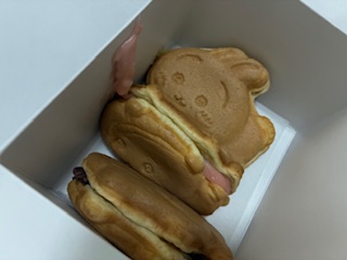 ちいかわ焼き可愛すぎて食べられないと思っていたんですが、帰って開けたら中身が飛び出してかわいそうなことに( ;∀;)