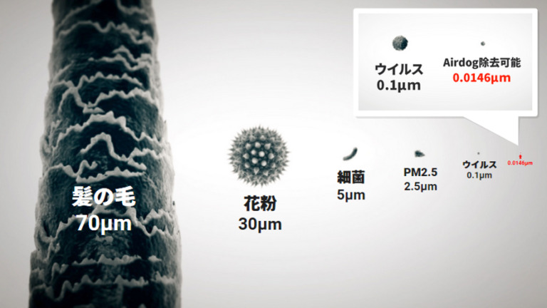 しかし、Airdogはウィルス(0.1μm)より微細な物質(0.0146μm)までを除去可能 ✨✨✨