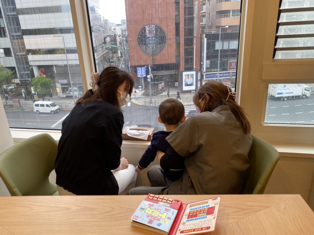 ママがクリーニング中、受付スタッフとDHと遊んで待っていました。